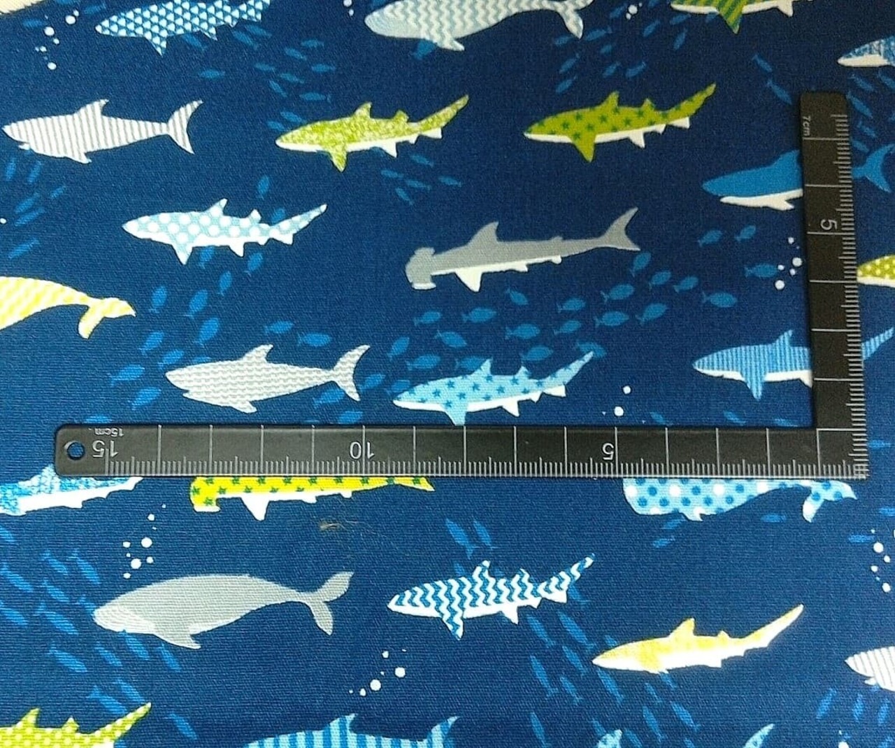 【布地のみ表示】布マスク「サメ&クジラ(青地)」