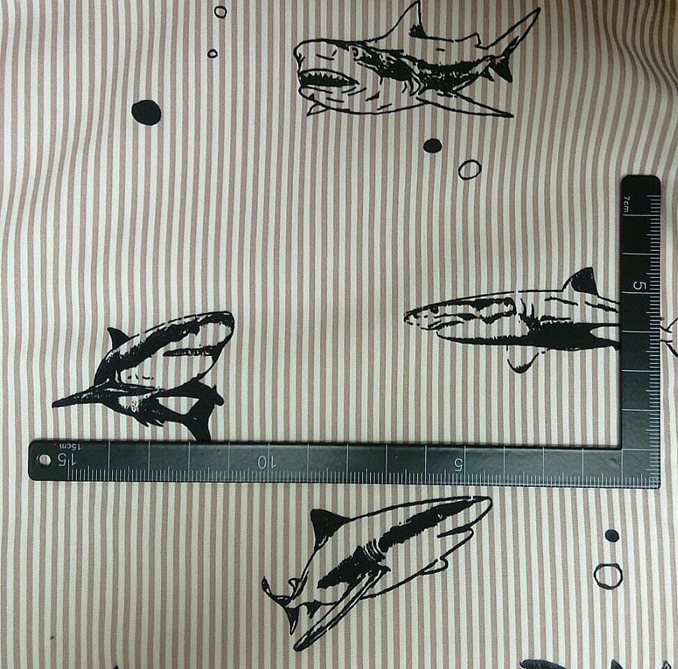 【布地のみ表示】布マスク「サメ(ピンクストライプ地)」