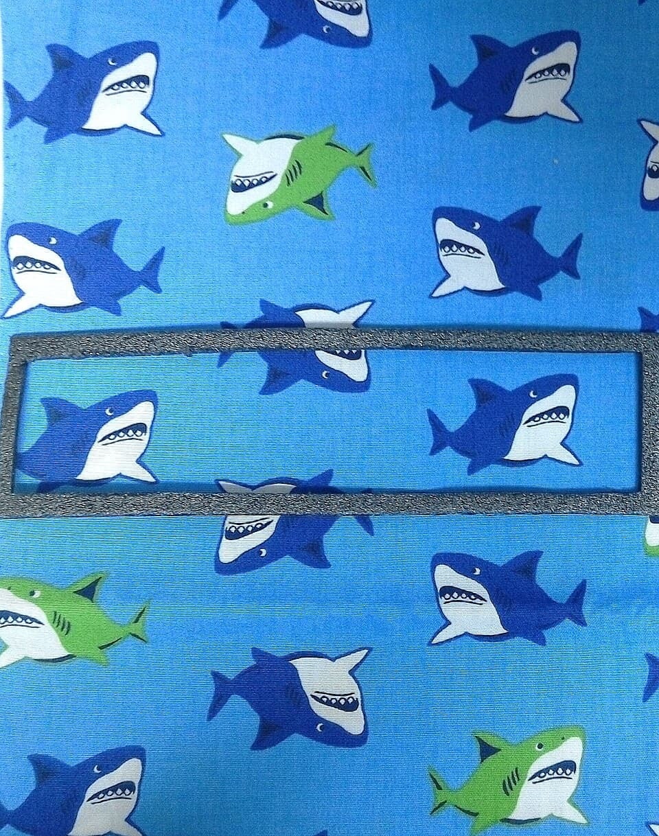 【布地のみ表示】布マスク「青&黄緑サメ(水色地)」