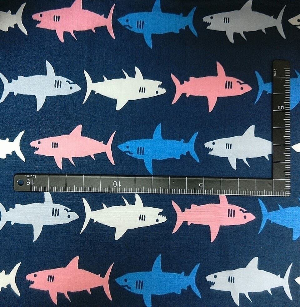 【布地のみ表示】布マスク「四色サメ(紺地)」