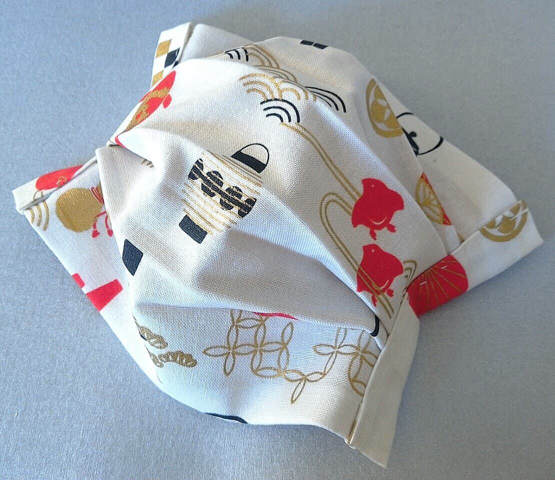 〇裏布付のプリーツ型(真ん中が一番でっぱってる形です)の布マスク