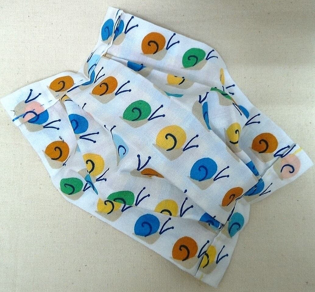 〇裏布付のプリーツ型(真ん中が一番でっぱってる形です)の布マスク