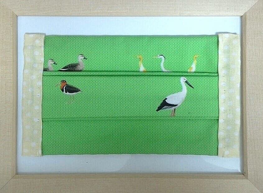 プリーツを広げると、上部に「サギ類&カルガモ」、下部に「ツバメ」がお目見えします。