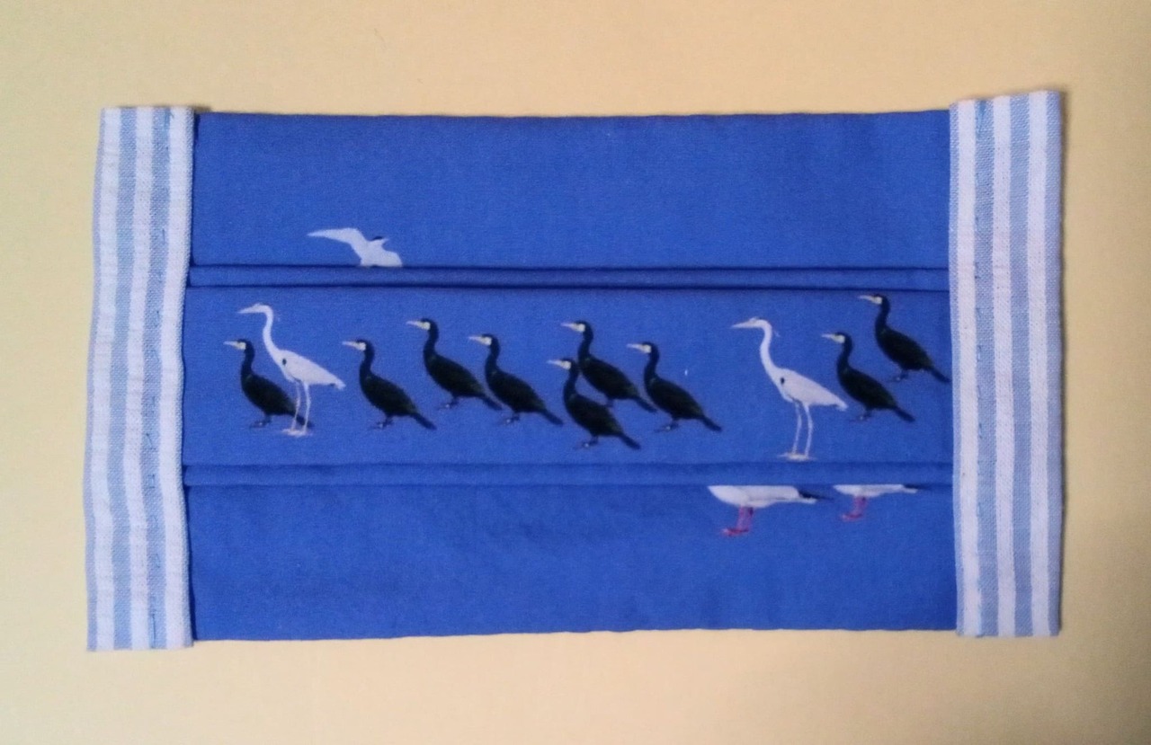 プリーツを広げると、上部に「コアジサシ」、下部に「ユリカモメ」がお目見えします。