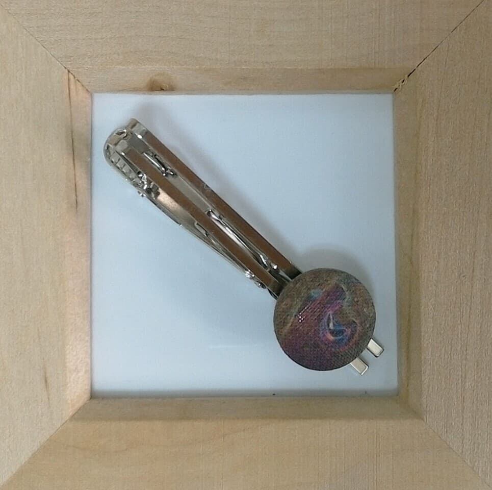 ◆サイズ:φ15㎜のくるみボタンを使用。全長は「5.2㎝」、金属は「銀色」です。