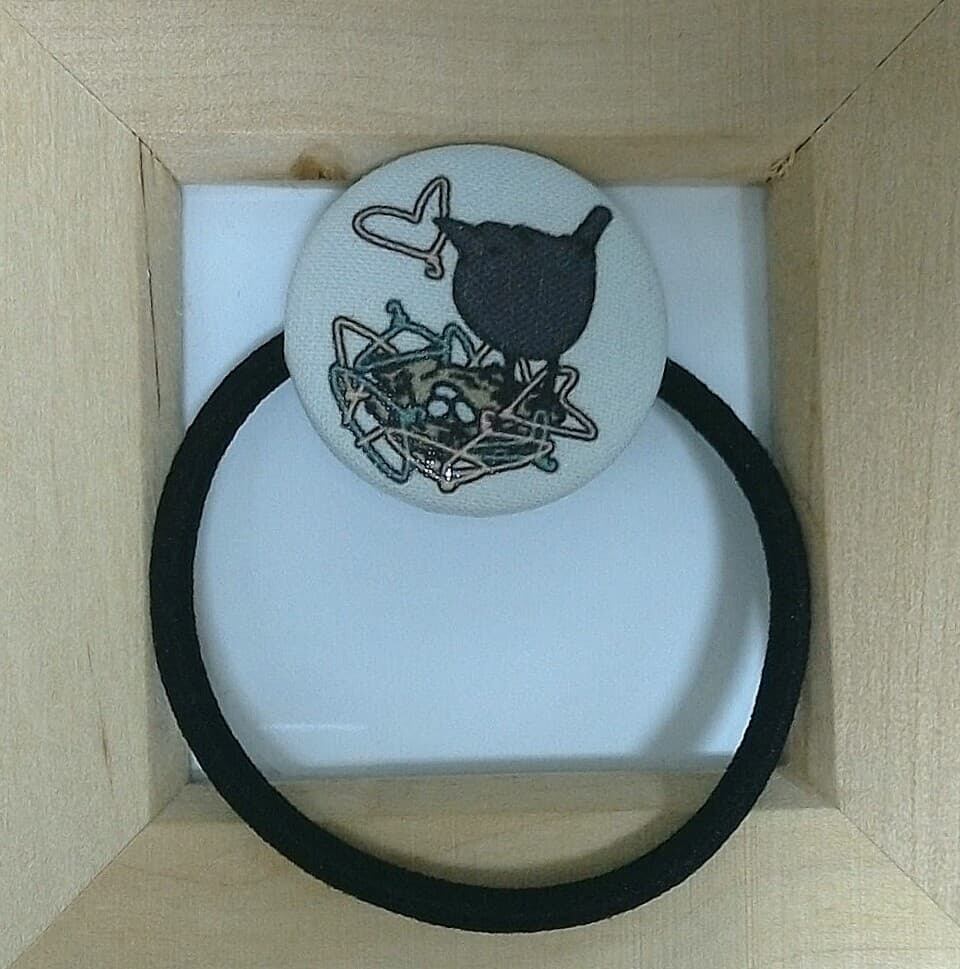 ◆サイズ:φ27㎜のくるみボタンを使用。ゴムは「黒色」で大きさ「約φ5㎝」、金属は「銀色」です。