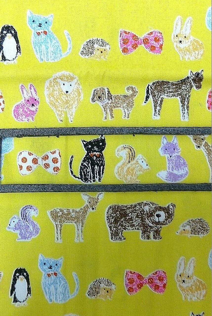 【布地のみ表示】布マスク「動物いろいろ・紫キツネ(黄色地)」