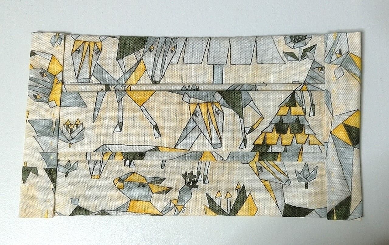 〇裏布付のプリーツ型(真ん中が一番でっぱってる形です)の布マスク