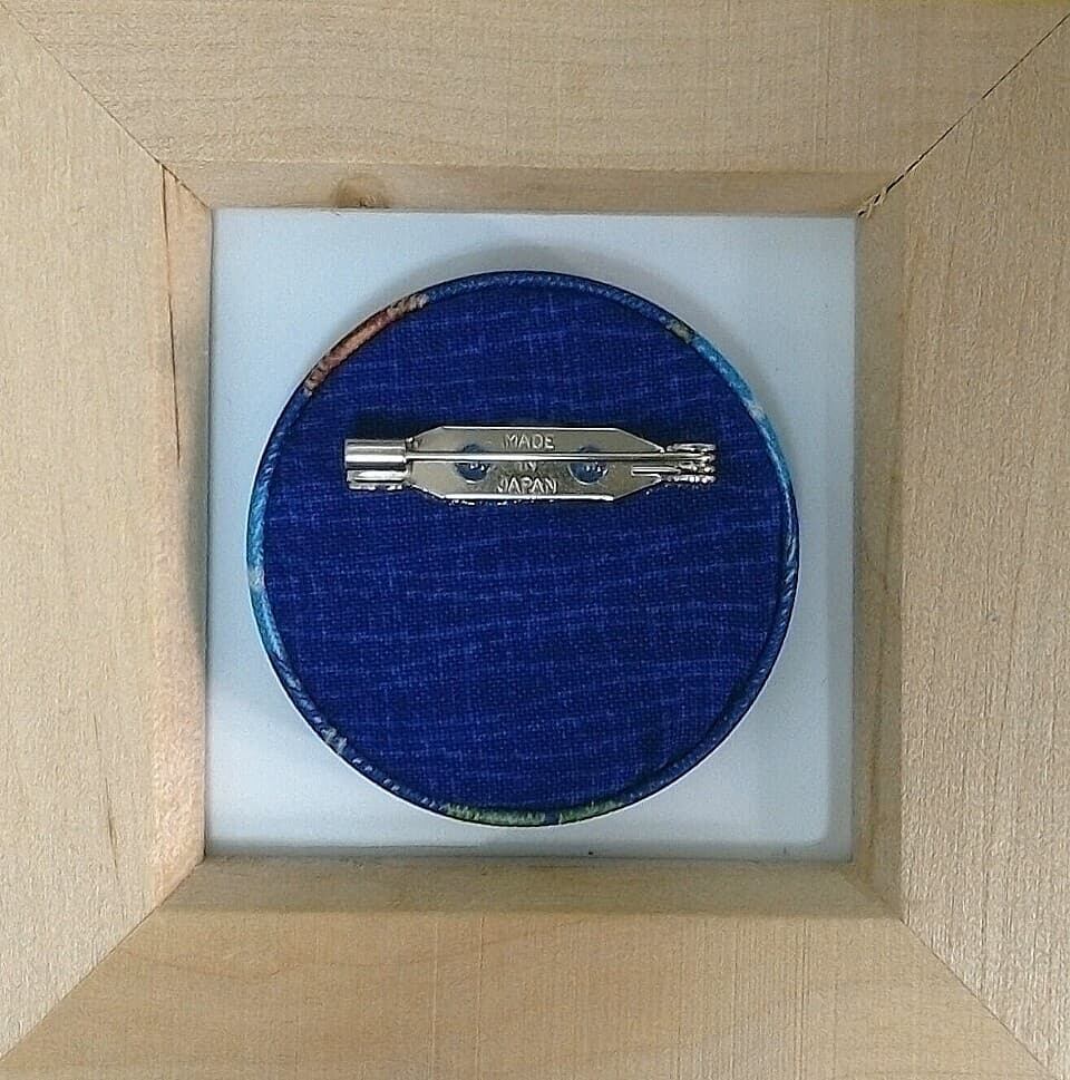 【布地のみ表示】ブローチ帯留めφ38㎜「黒ウマ(水色地)」