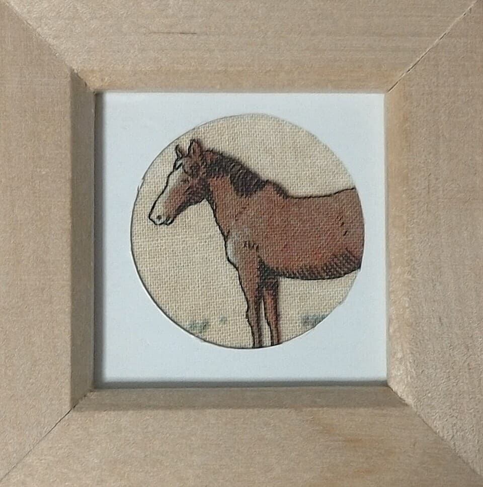 【布地のみ表示】ブローチ帯留めφ38㎜「佇むウマ」