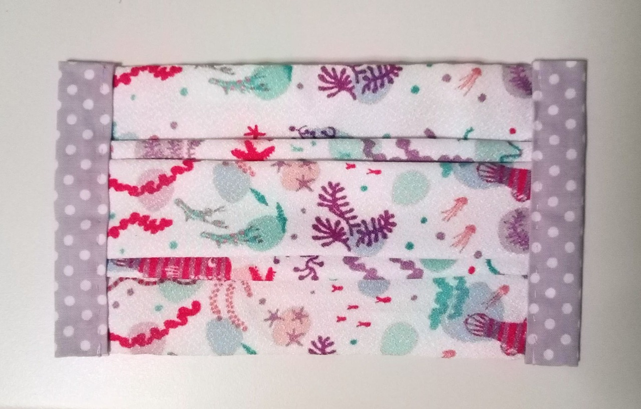 〇裏布付のプリーツ型(真ん中が一番でっぱってる形です)の布マスク