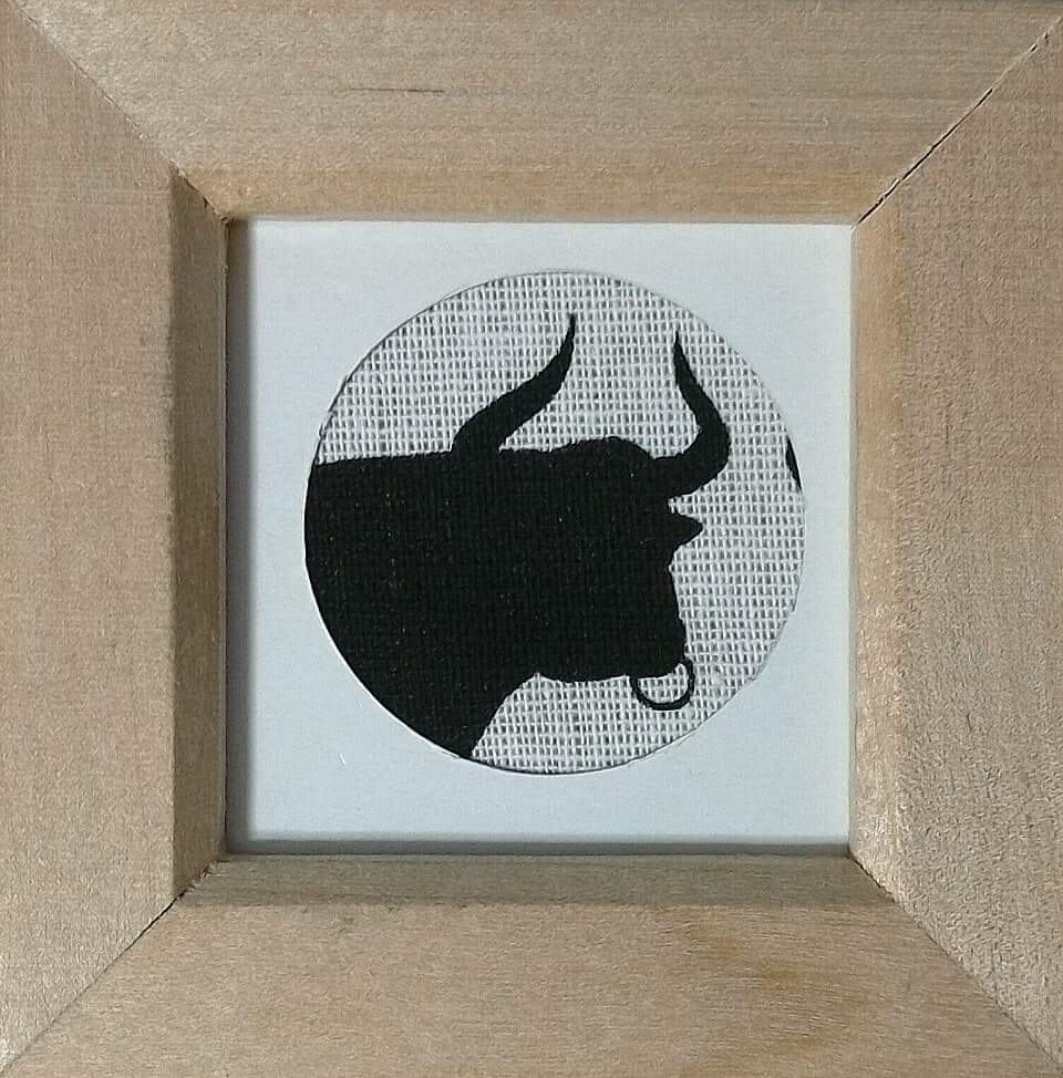 【布地のみ表示】ブローチ帯留めφ38㎜「シルエット牡牛」