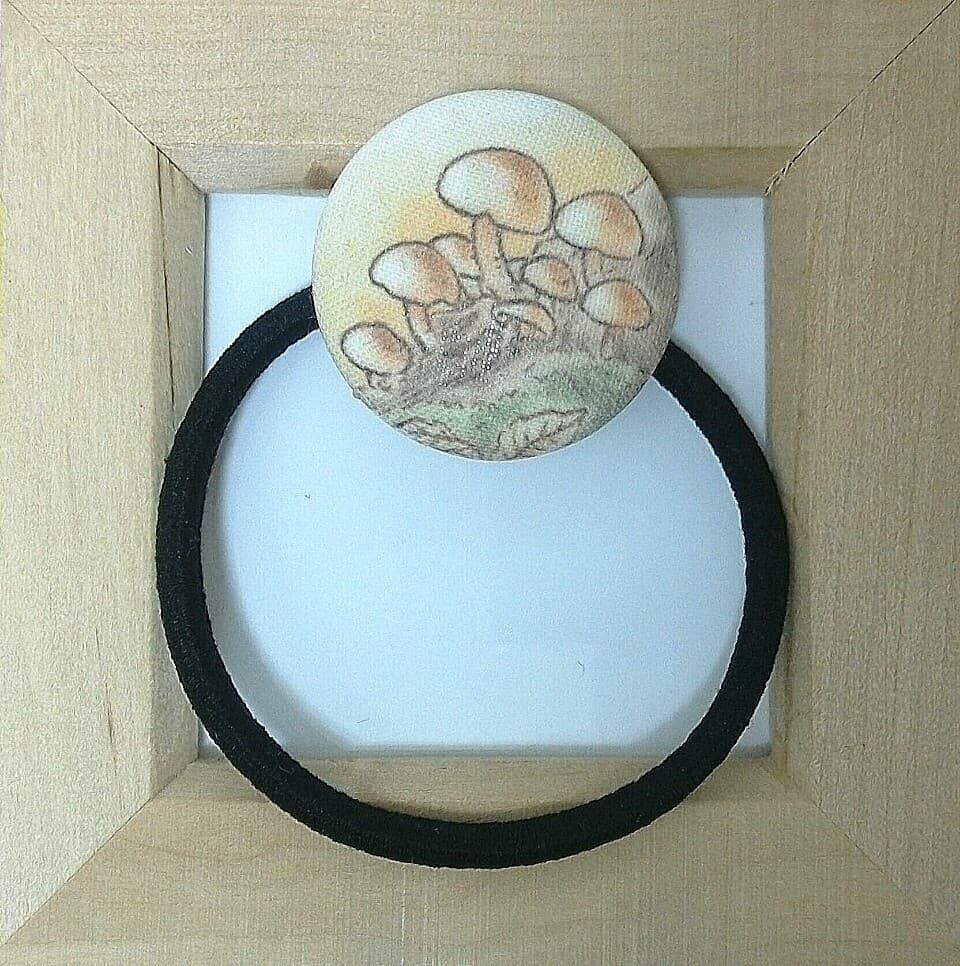 ◆サイズ:φ27㎜のくるみボタンを使用。ゴムは「黒色」で大きさ「約φ5㎝」、金属は「銀色」です。