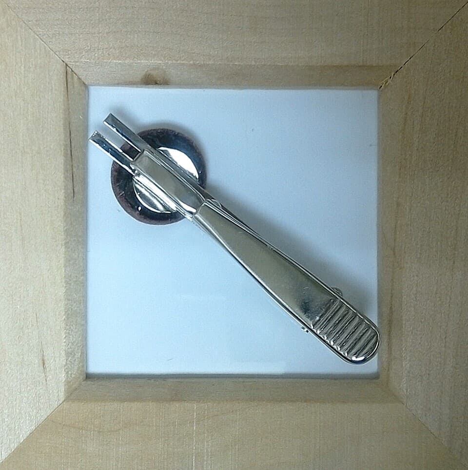 ◆サイズ:φ15㎜のくるみボタンを使用。全長は「5.2㎝」、金属は「銀色」です。