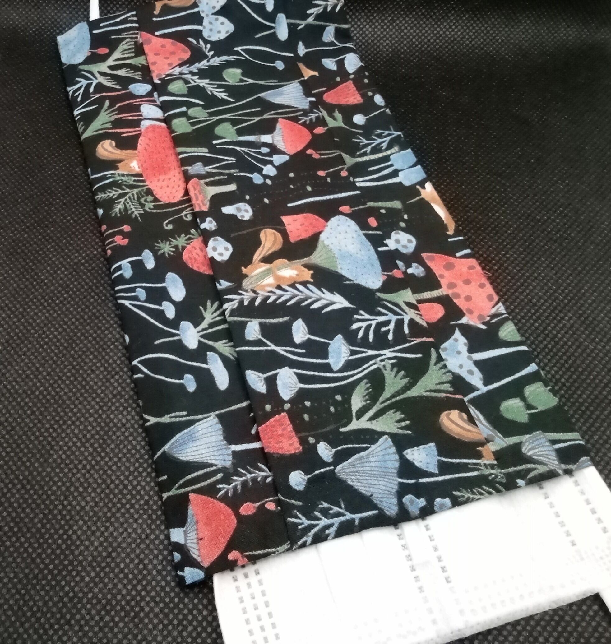 筒状になっていおり、中に使い捨てマスクを入れて使います。