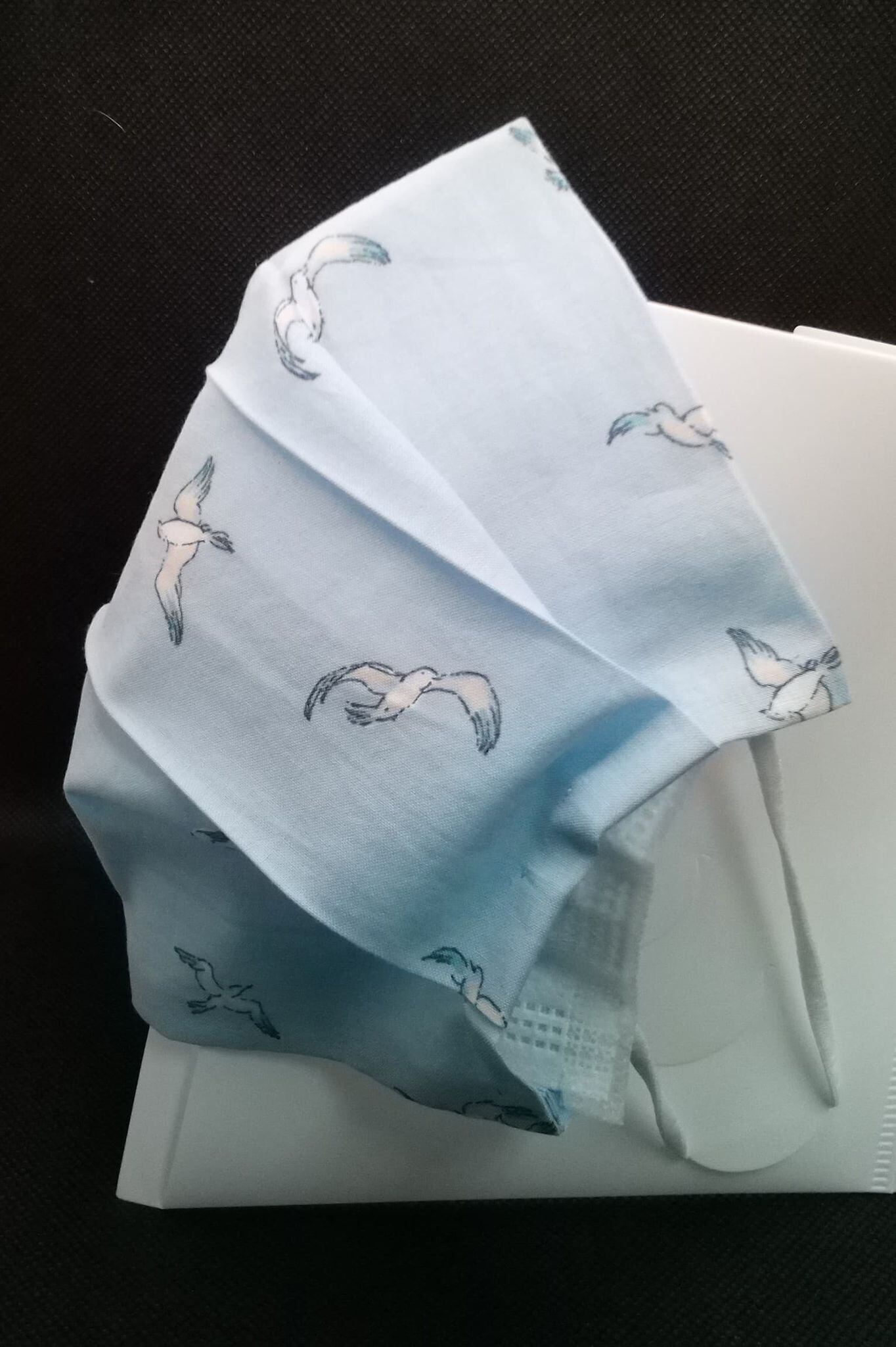 不織布マスク用の布カバー「カモメ風(水色地)」