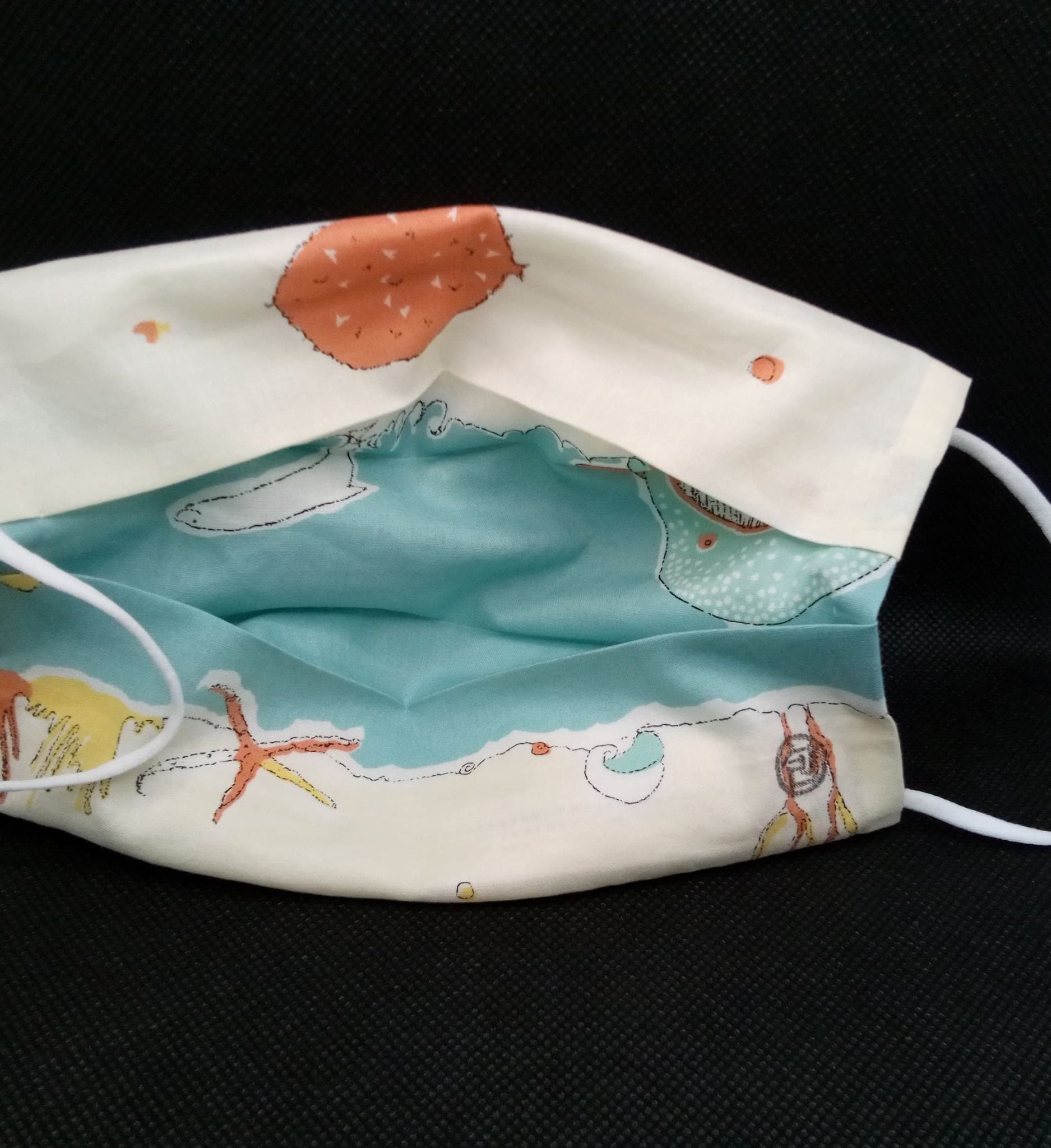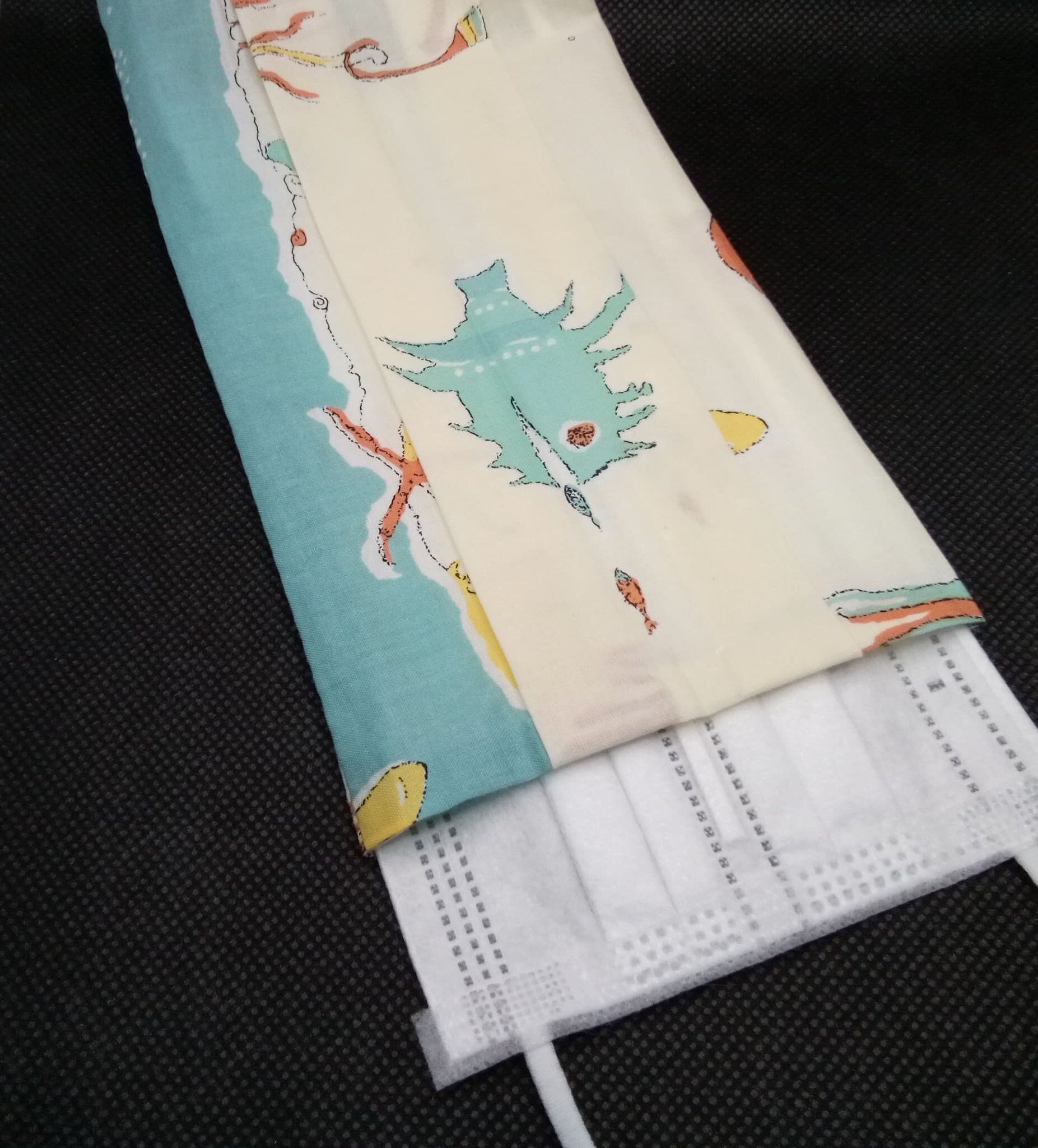 不織布マスク用の布カバー「海の中(クリーム&水色地)・トゲトゲサカナ中心」