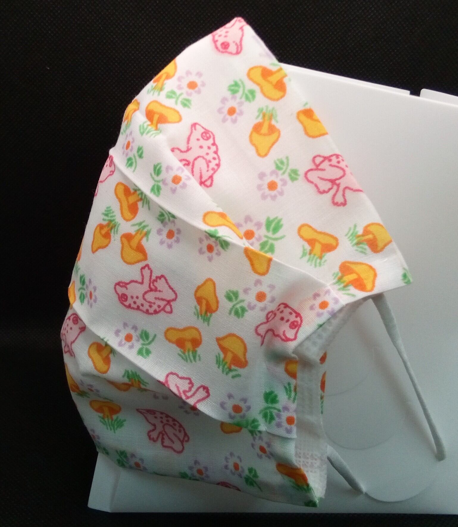 マスクのプリーツに合うように、真ん中高のプリーツを入れてます。