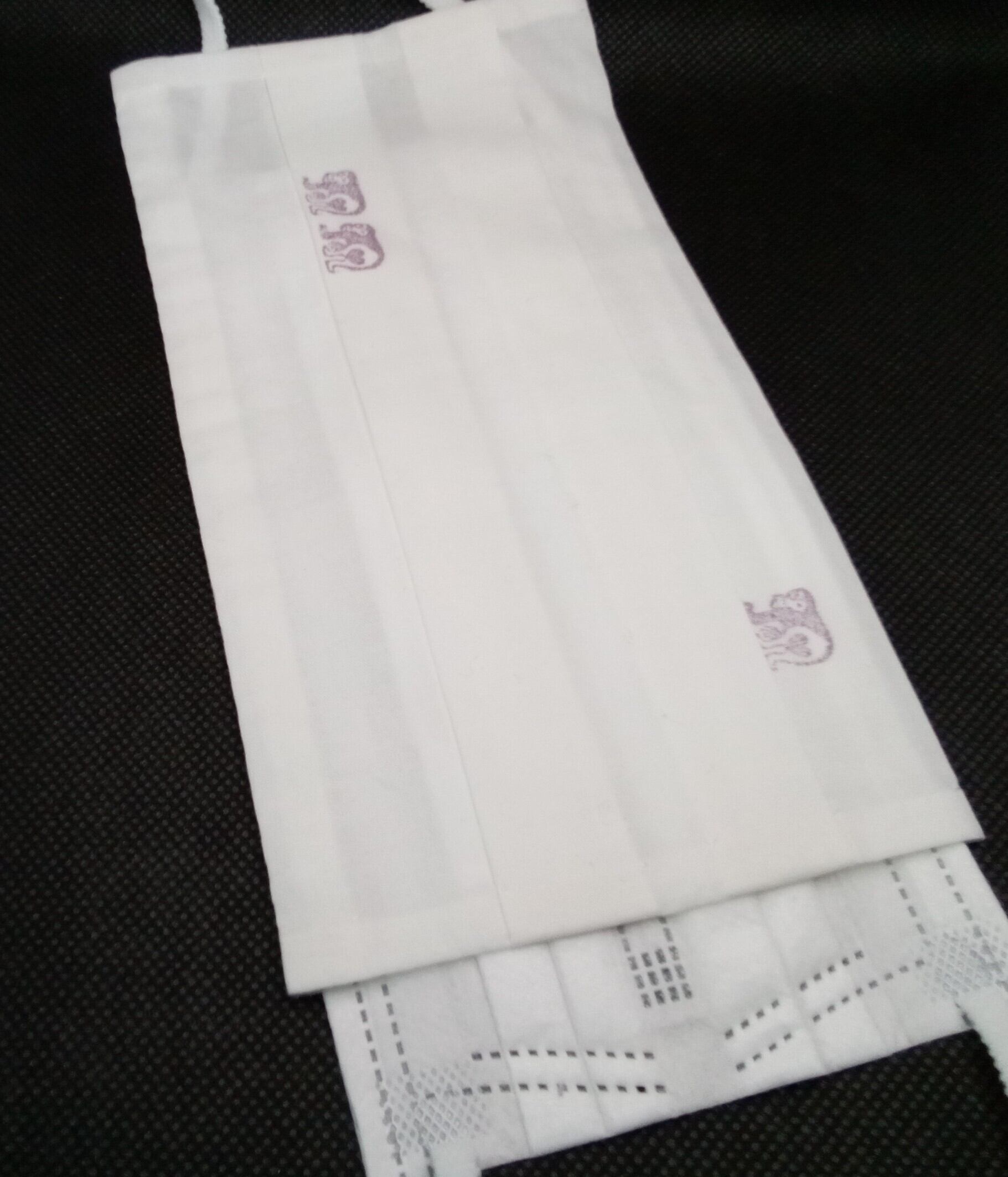 マスクのプリーツに添うように、プリーツ(真ん中高)を入れてます。