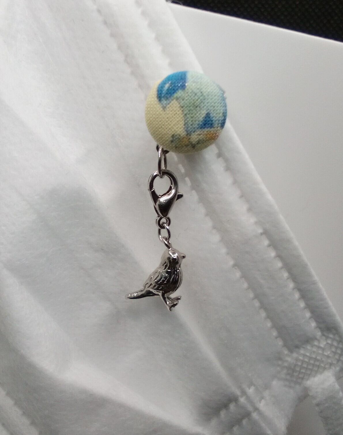 〇着せ替えくるみボタン(φ12㎜)+着せ替えのクリップ式マスク飾り・チャーム付き(銀色)のセット。