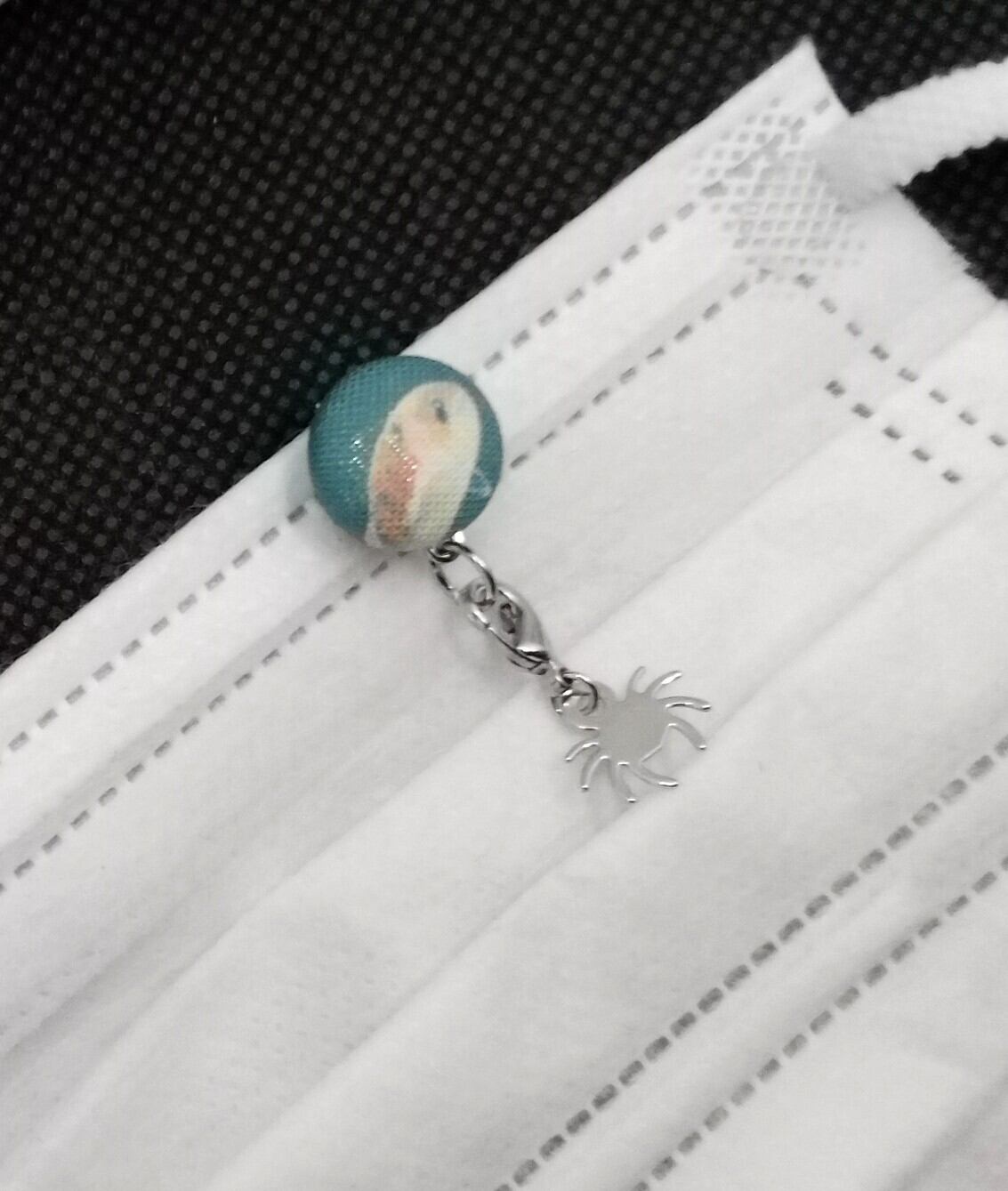 〇着せ替えくるみボタン(φ12㎜)+着せ替えのクリップ式マスク飾り・チャーム付き(銀色)のセット。