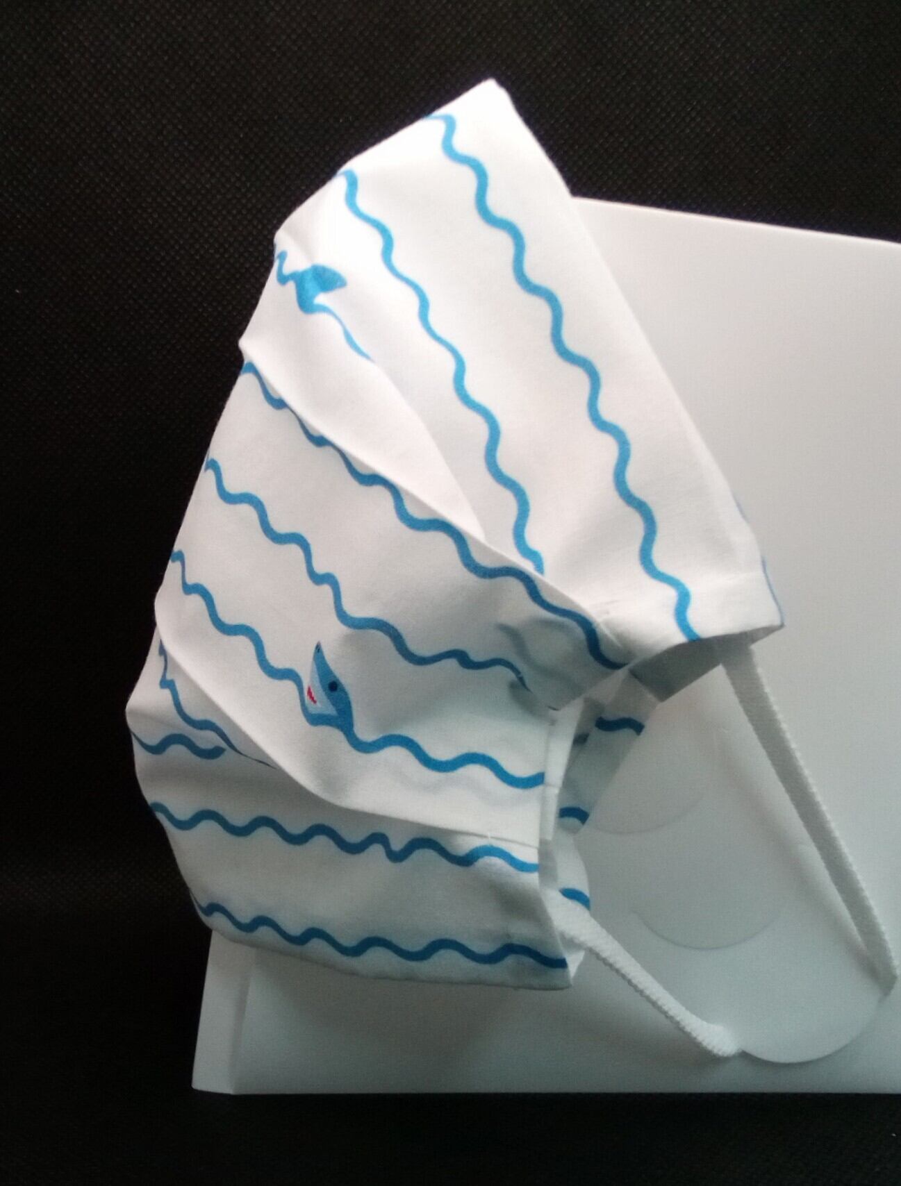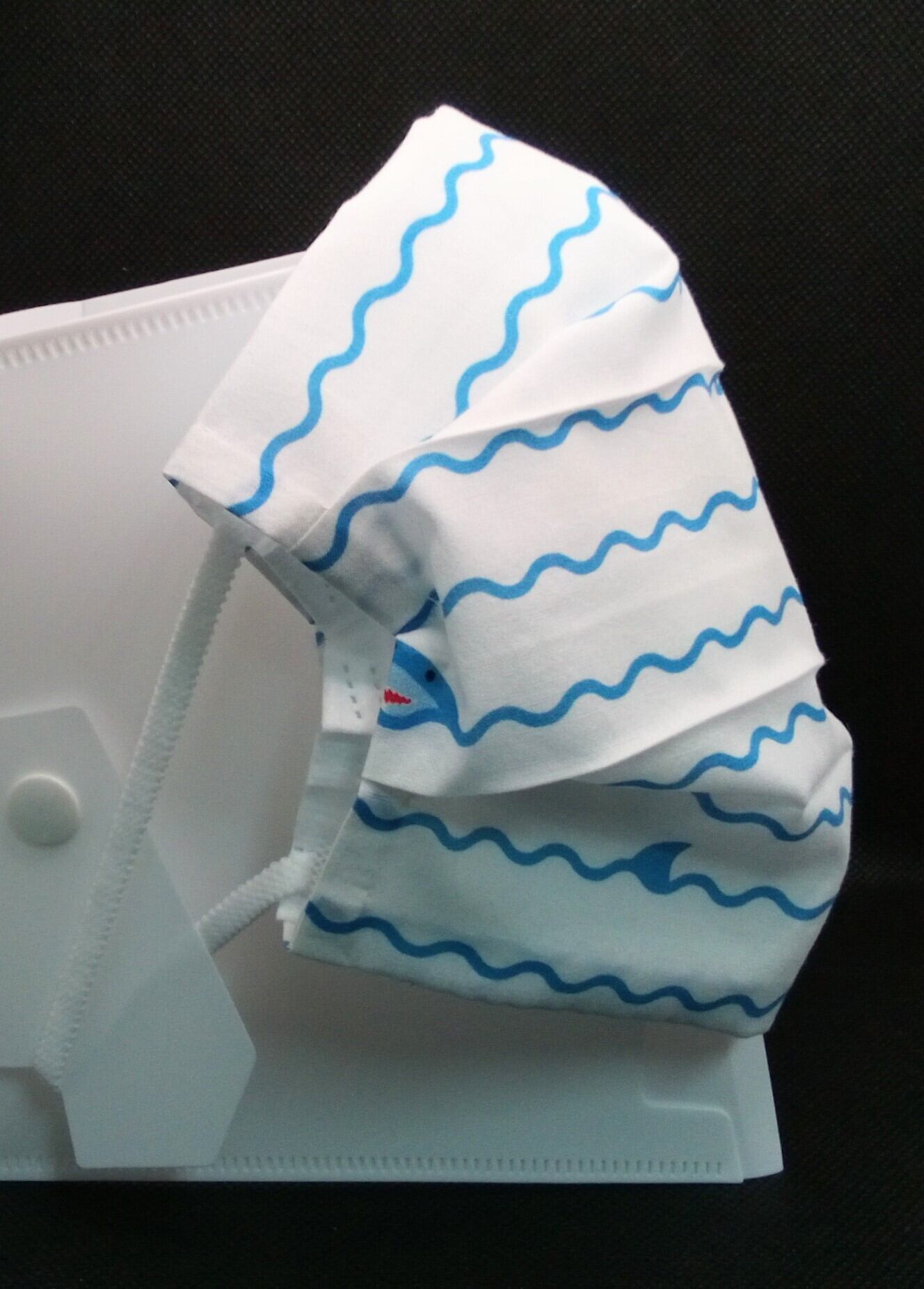 マスクのプリーツに添うように、プリーツ(真ん中高)を入れてます。