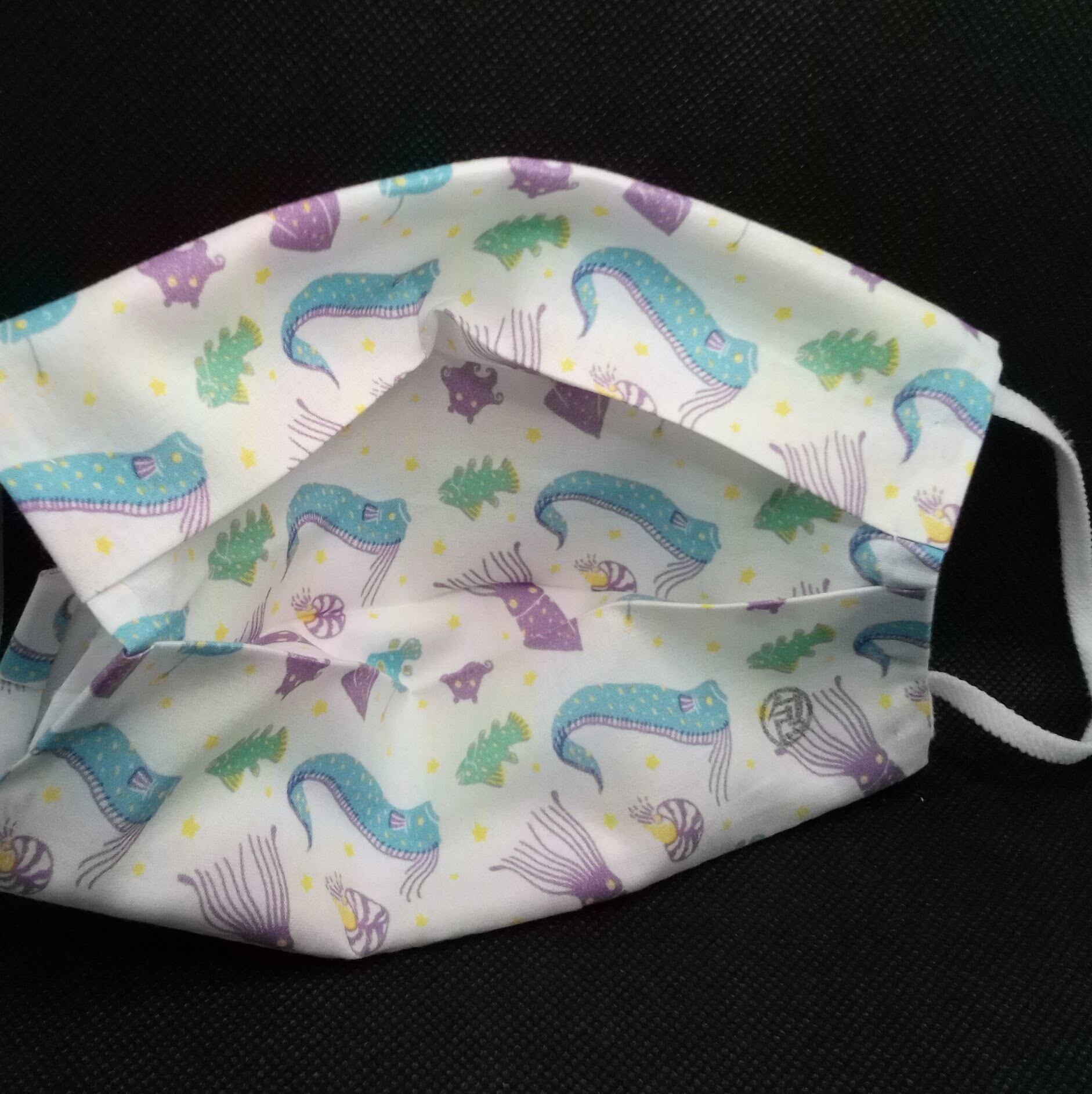 マスクのプリーツに添うように、プリーツ(真ん中高)を入れてます。