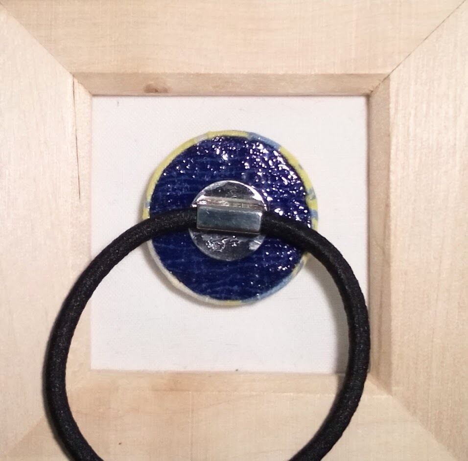 ◆サイズ:φ27㎜のくるみボタンを使用。ゴムは「黒色」で大きさ「約φ5㎝」、金属は「銀色」です。