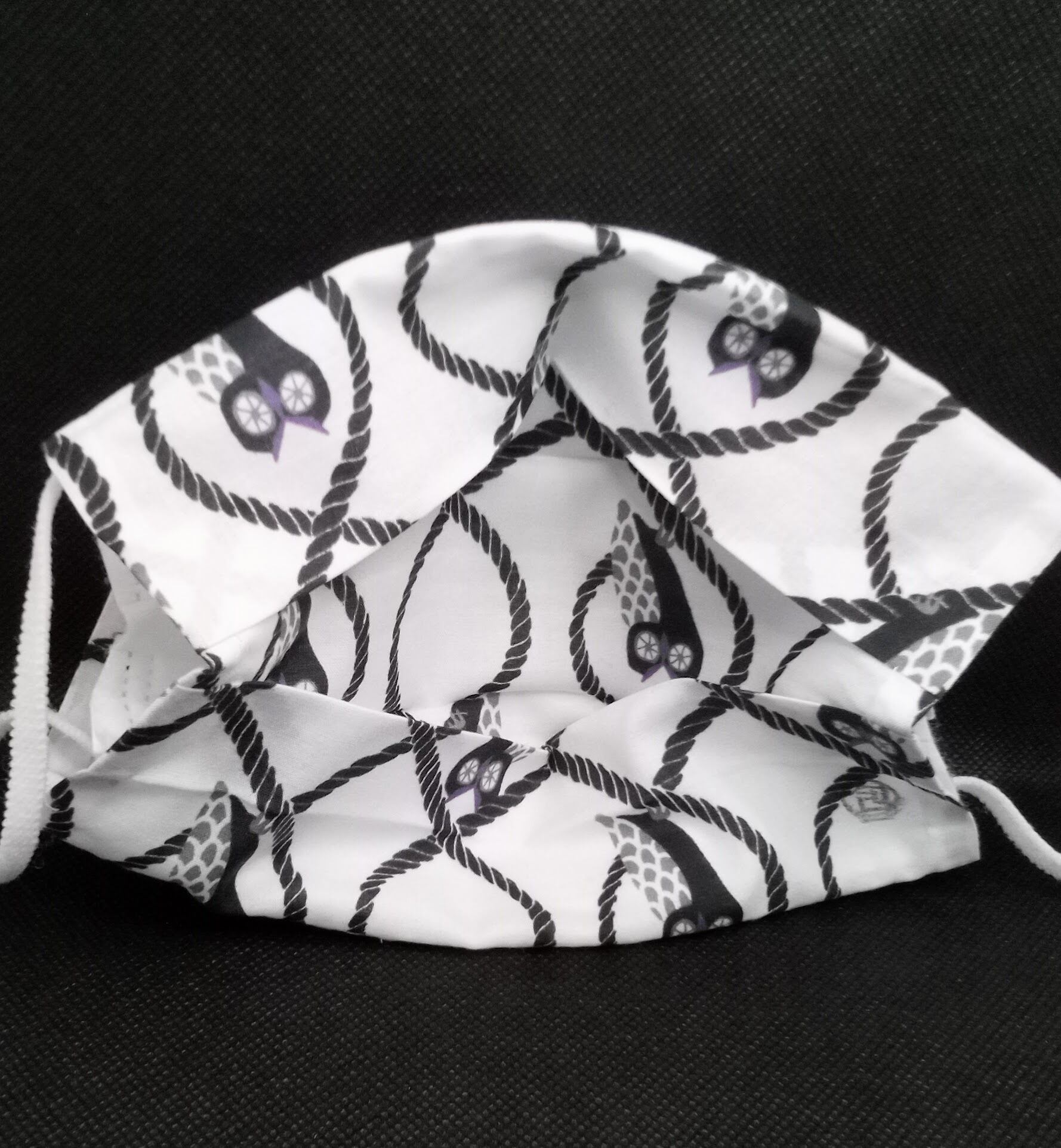 マスクのプリーツに添うように、プリーツ(真ん中高)を入れてます。