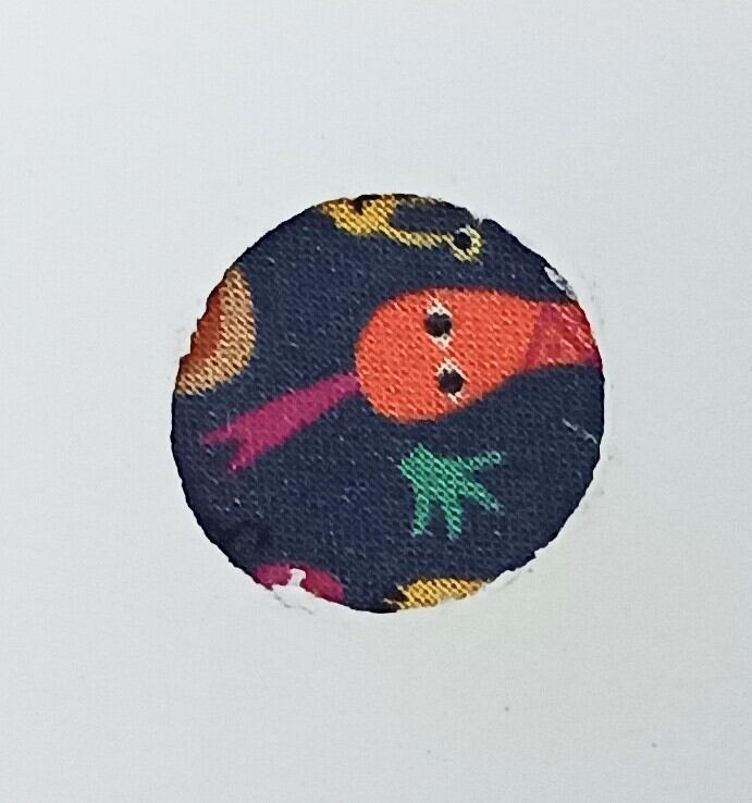 ◆素材:くるみボタンーアルミニウム。生地ー綿ローン[リバティ・プリント使用]。
